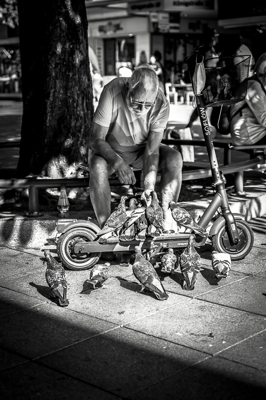 Wer hätte es gedacht, aber auch in Deutschland kann man der Streetfotografie sehr gut nachgehen. Wenngleich viele bei der Straßenfotografie erst mal an New York oder an ähnliche große Metropolen denken, sind unter den Streetfotografen die deutschen Städte zwischenzeitlich sehr beliebt. Ja gut, was bleibt einem auch anderes übrig würde so mancher sagen. Man kann ja nicht jedes Wochenende nach New York, Paris oder Barcelona fliegen. Aber richtig in Szene gesetzt und an den richtigen Plätzen ist die Streetfotografie auch in Deutschland ein echter Burner. Und auch die Schwabenmetropole muss sich hier nicht scheuen. Bei einem Streifzug durch das Bohnenviertel und die Innenstadt, der U-Bahnhaltestelle am Schlossplatz bis hinauf zum Hauptbahnhof und weiter zur Stadtbibliothek, wird man mit vielen urbanen Straßenszenen belohnt. Hier spürt man, dass man sich in einer Großstadt befindet. Die Leute sind wesentlich lockerer und man kann sich mit der Kamera ähnlich frei bewegen wie in anderen großen Städten der Welt. Viel Spaß mit meiner schwäbischen Straßenfotografie :-)
