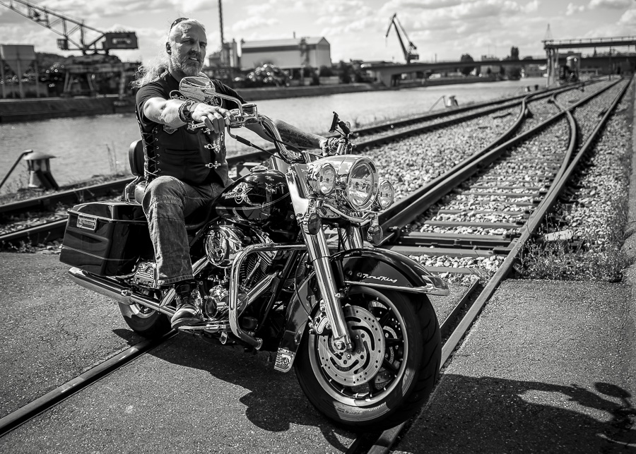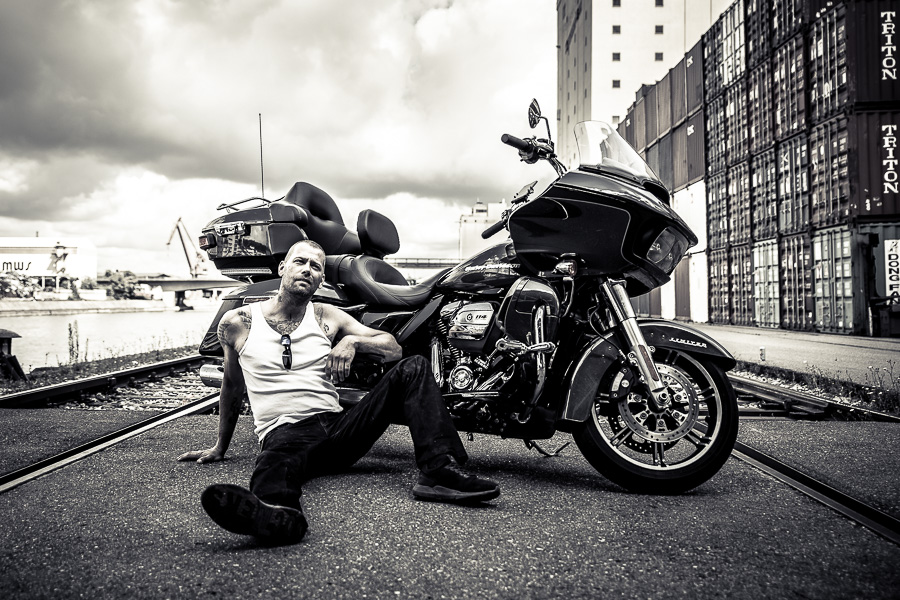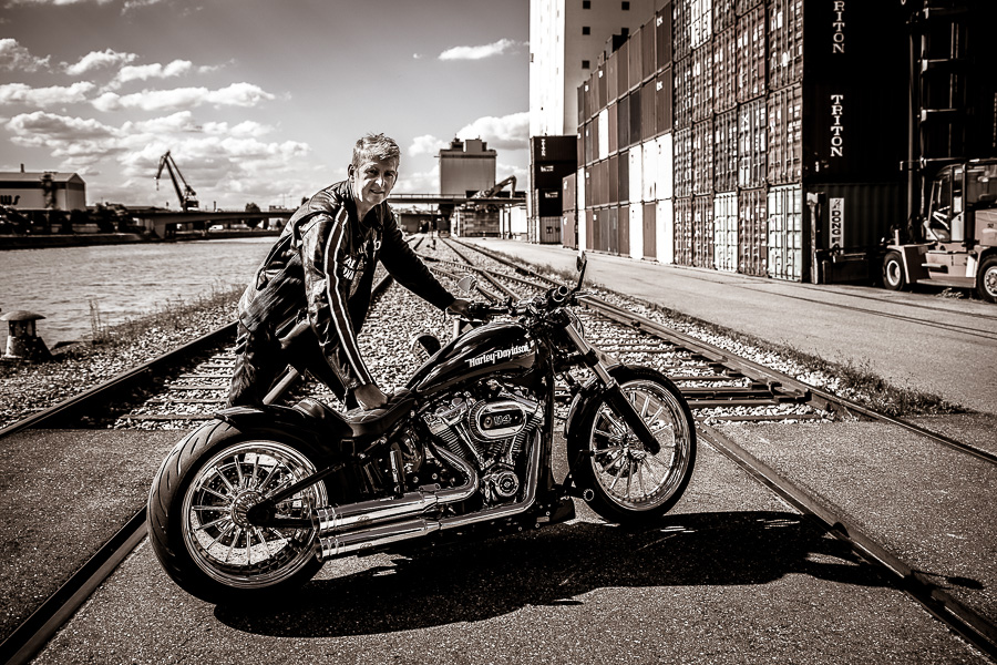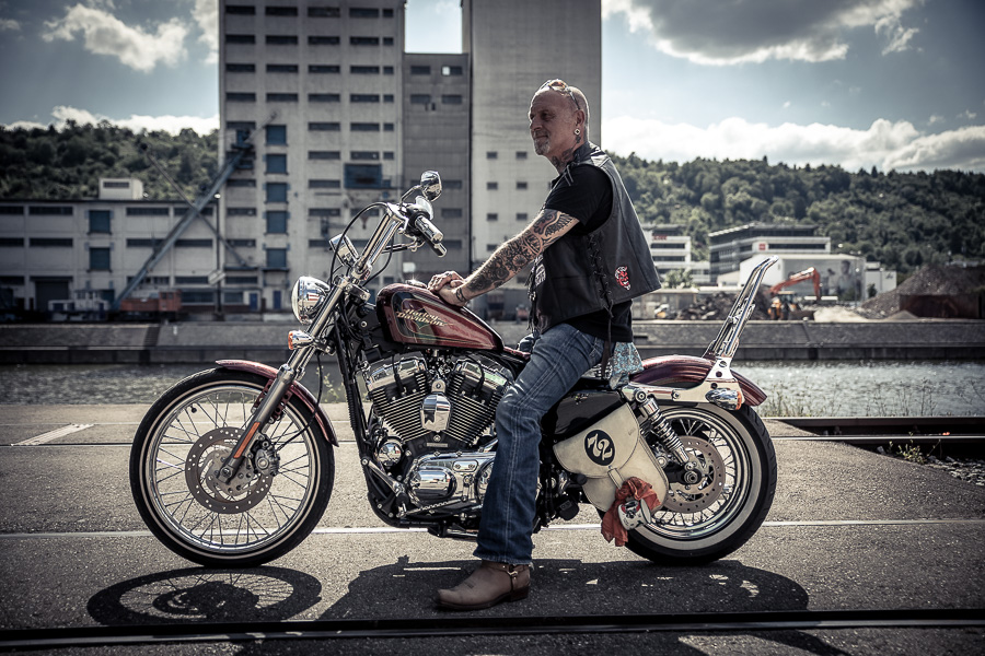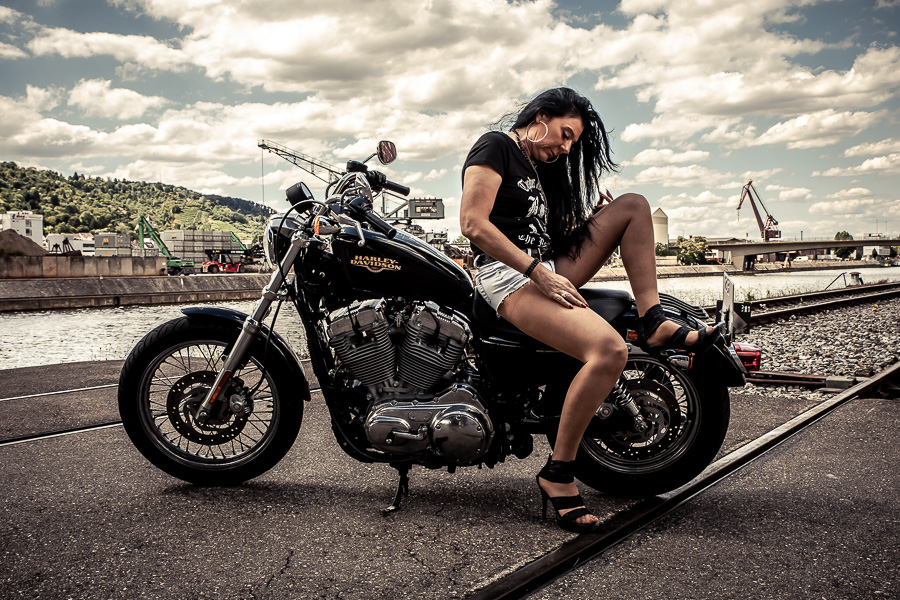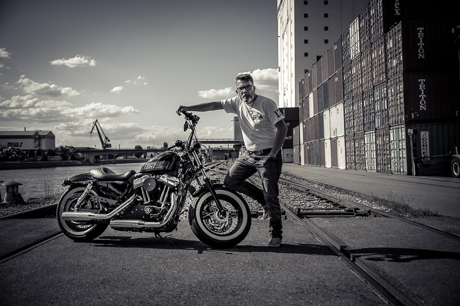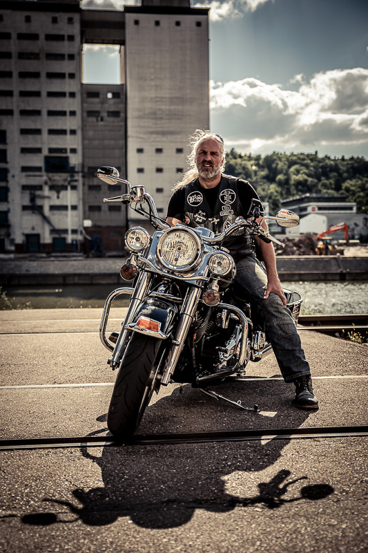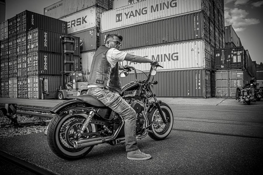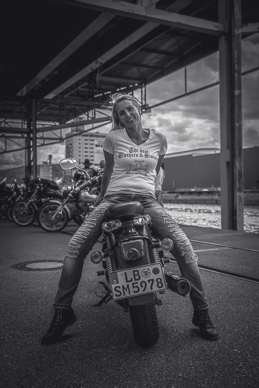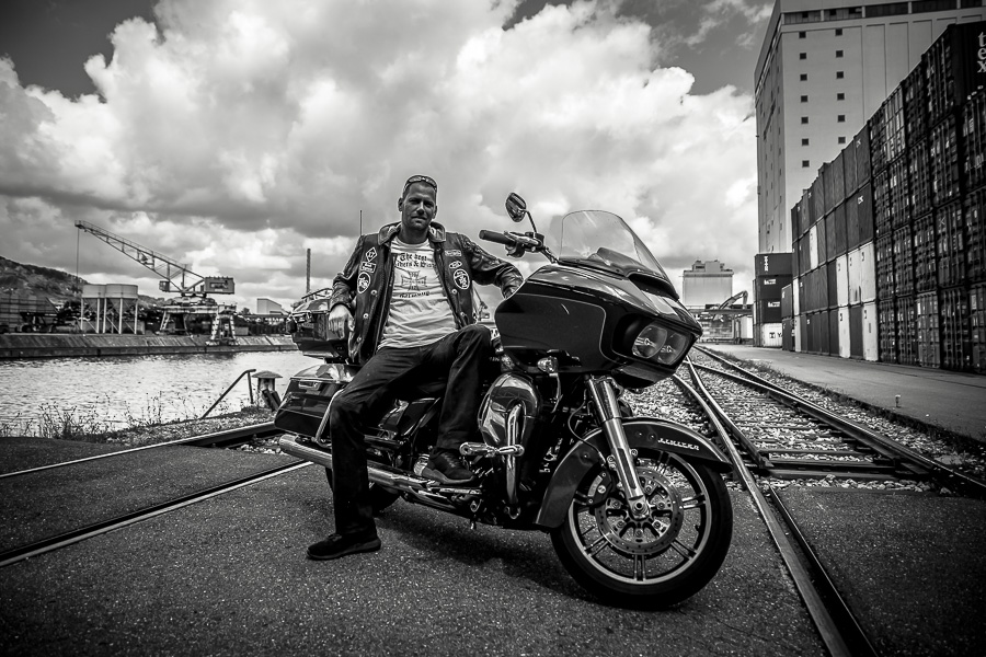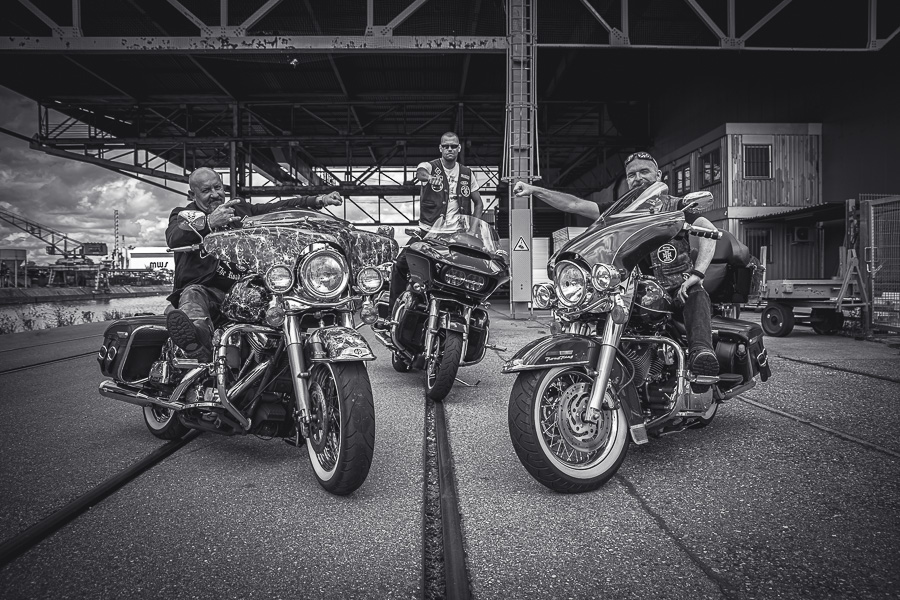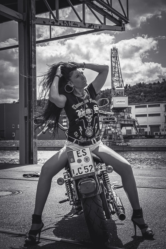 Bamm, was für ein Megafotoshooting mit über 30 Bikern der "The Best Brothers And Sisters" aus Stuttgart. Seit wir uns über die "Road Roses" und das legendäre "Treffen am Schweinemuseum" kennengelernt hatten, waren wir alle schon lange scharf auf ein Fotoevent. Leicht würde es nicht, dass hatten wir bei der Menge an Bikern und Bikerinnen gewusst. Allerdings wollte ich mir ein Shooting mit so vielen geilen Harley Davidson und Choppern auch nicht entgehen lassen. Das erste Shooting mussten wir aus wettertechnischen Gründen absagen, was für alle sehr enttäuschend war. Daher haben wir Nägel mit Köpfen gemacht. Eine wetterfeste Location hatte ich über das Stuttgarter Fotografennetzwerk dank Facebook schnell gefunden. Die Biker haben sich um die Verpflegung, die Anfahrten und die gute Laune gekümmert. Meine Frau Jana und ich haben alles weitere organisiert. Wir haben die Genehmigungen und das Einverständnis des Hafen Stuttgart und den angrenzenden Firmen eingeholt. Vielen Dank für die freundlichen und schnellen Bewilligungen. Ich will euch daher auch gar nicht länger auf die Folter spannen und die Fotos zeigen. Tatsächlich sind es für eine Fotogalerie viel zu viel Fotos geworden. Aber bei so vielen Bikern, die ihren tollen Harley Davidson und Choppern in nichts nachstanden, sind einfach viele klasse Fotos entstanden.