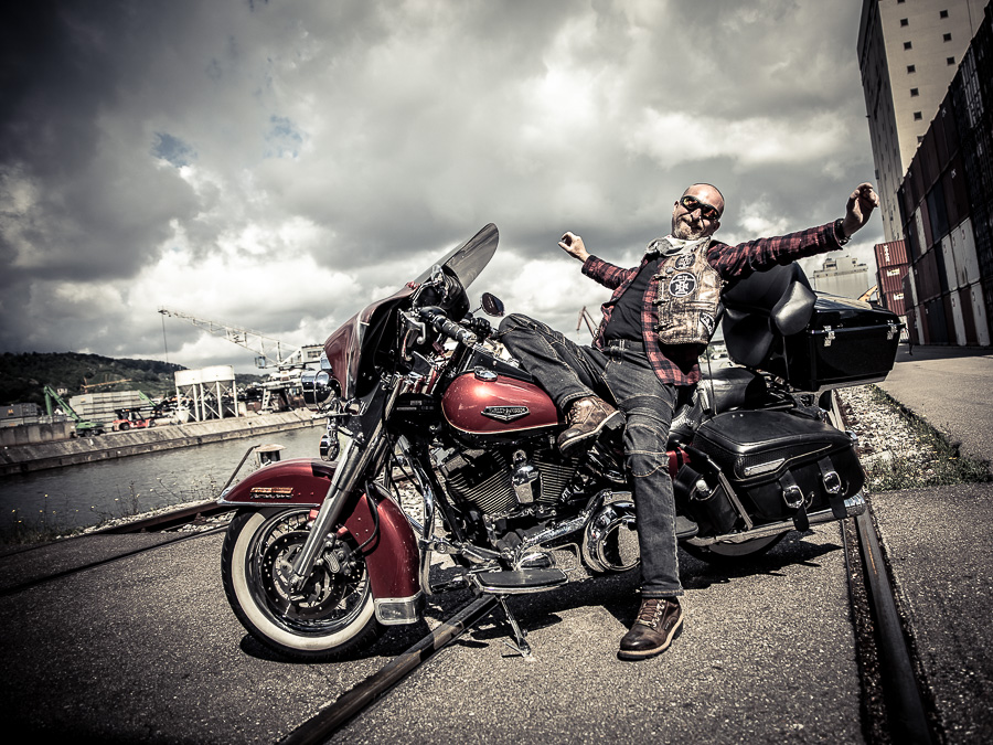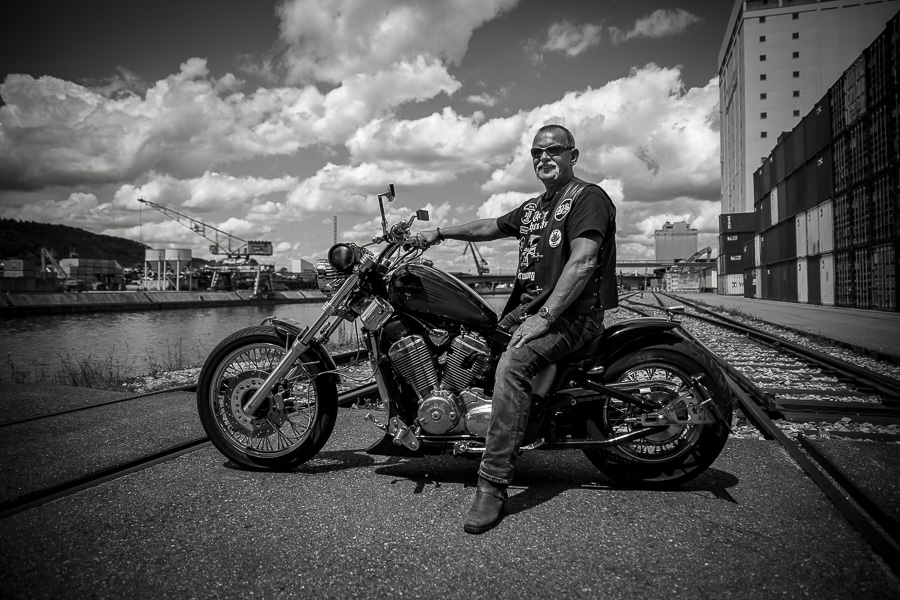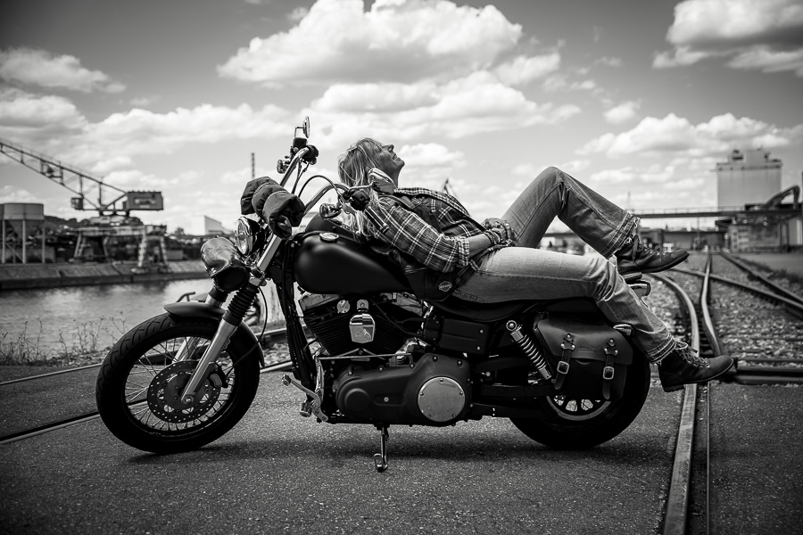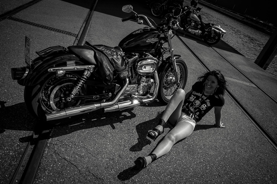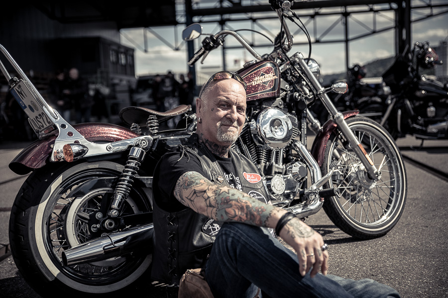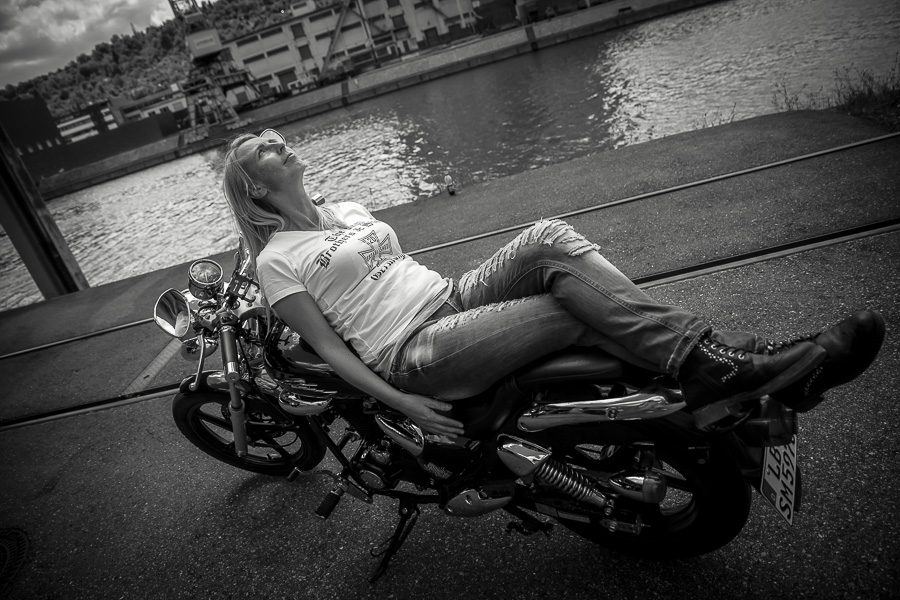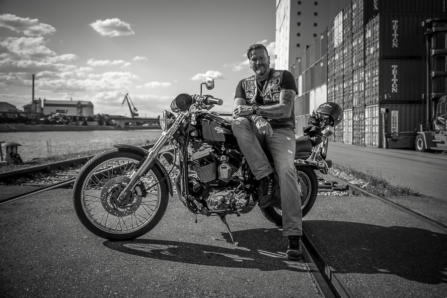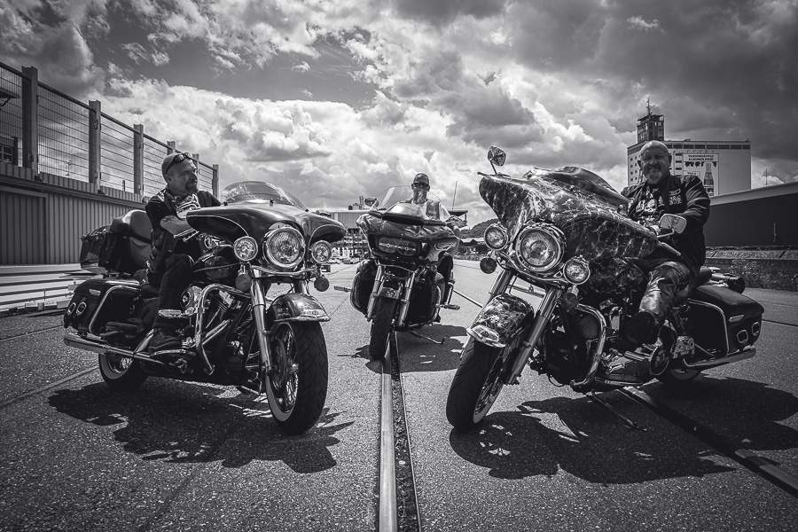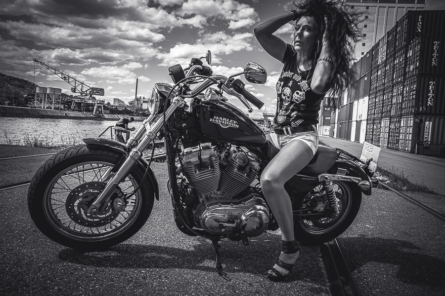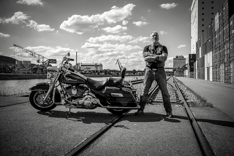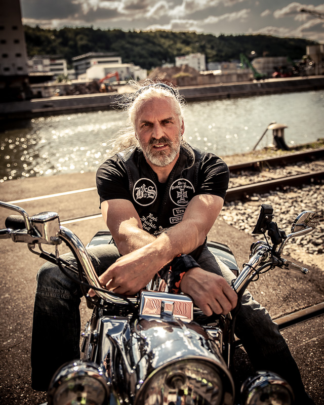 Bamm, was für ein Megafotoshooting mit über 30 Bikern der "The Best Brothers And Sisters" aus Stuttgart. Seit wir uns über die "Road Roses" und das legendäre "Treffen am Schweinemuseum" kennengelernt hatten, waren wir alle schon lange scharf auf ein Fotoevent. Leicht würde es nicht, dass hatten wir bei der Menge an Bikern und Bikerinnen gewusst. Allerdings wollte ich mir ein Shooting mit so vielen geilen Harley Davidson und Choppern auch nicht entgehen lassen. Das erste Shooting mussten wir aus wettertechnischen Gründen absagen, was für alle sehr enttäuschend war. Daher haben wir Nägel mit Köpfen gemacht. Eine wetterfeste Location hatte ich über das Stuttgarter Fotografennetzwerk dank Facebook schnell gefunden. Die Biker haben sich um die Verpflegung, die Anfahrten und die gute Laune gekümmert. Meine Frau Jana und ich haben alles weitere organisiert. Wir haben die Genehmigungen und das Einverständnis des Hafen Stuttgart und den angrenzenden Firmen eingeholt. Vielen Dank für die freundlichen und schnellen Bewilligungen. Ich will euch daher auch gar nicht länger auf die Folter spannen und die Fotos zeigen. Tatsächlich sind es für eine Fotogalerie viel zu viel Fotos geworden. Aber bei so vielen Bikern, die ihren tollen Harley Davidson und Choppern in nichts nachstanden, sind einfach viele klasse Fotos entstanden.