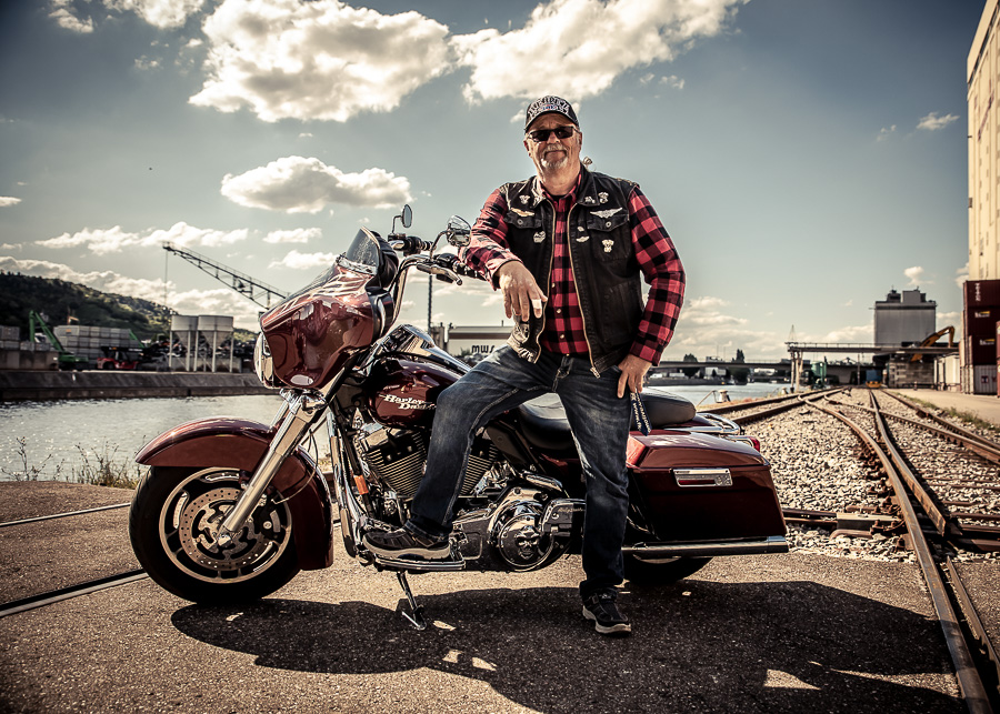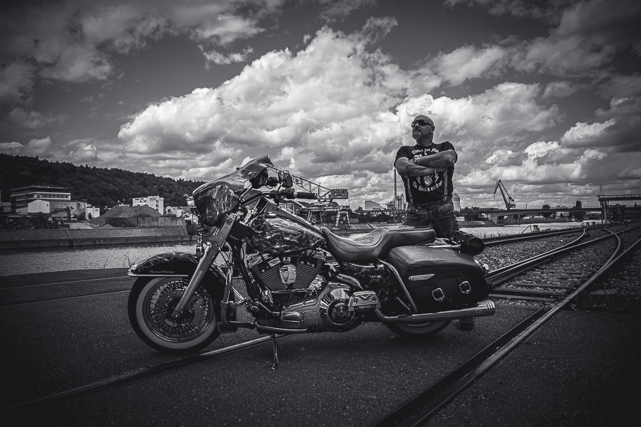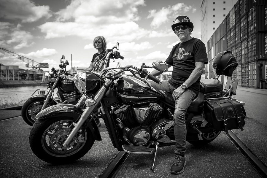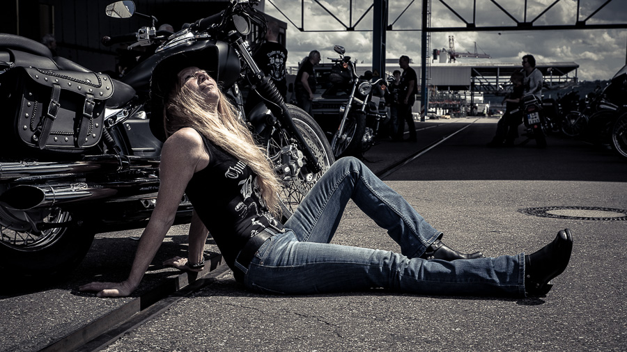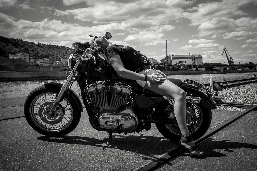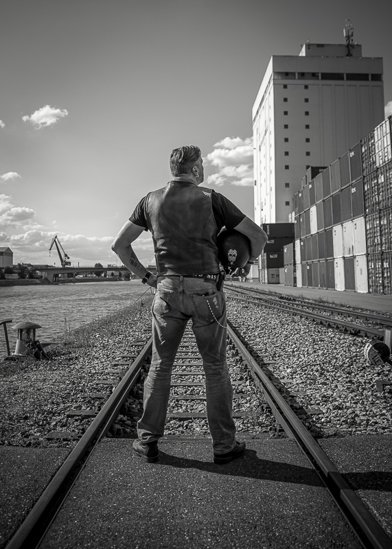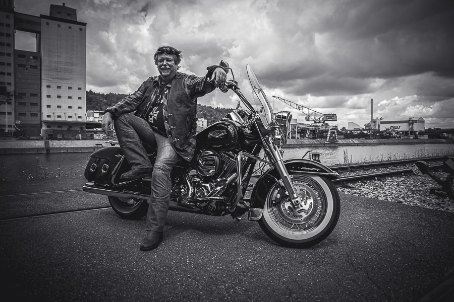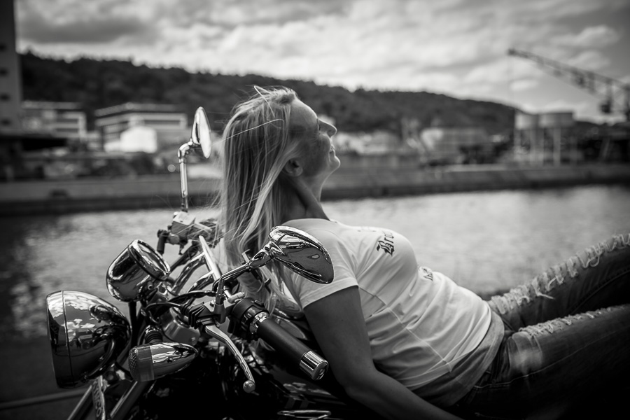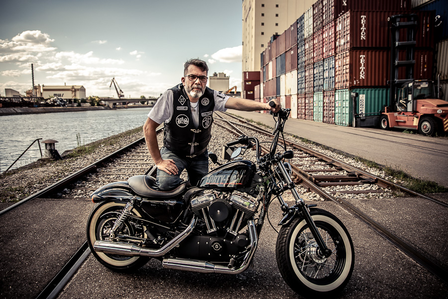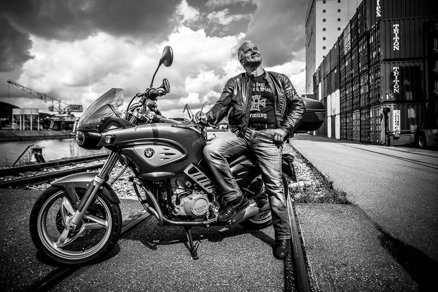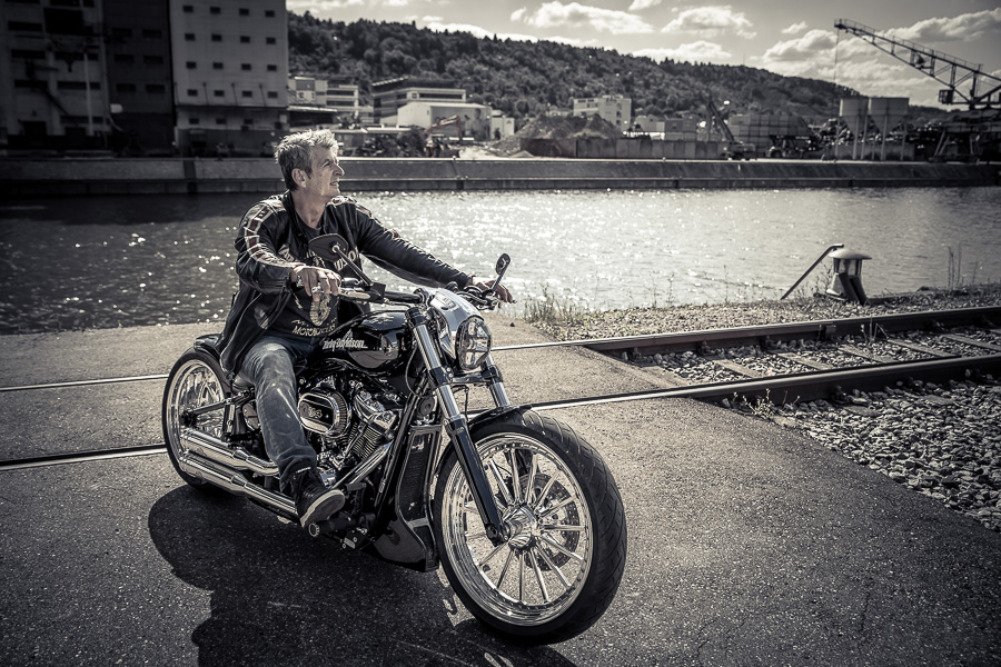 Bamm, was für ein Megafotoshooting mit über 30 Bikern der "The Best Brothers And Sisters" aus Stuttgart. Seit wir uns über die "Road Roses" und das legendäre "Treffen am Schweinemuseum" kennengelernt hatten, waren wir alle schon lange scharf auf ein Fotoevent. Leicht würde es nicht, dass hatten wir bei der Menge an Bikern und Bikerinnen gewusst. Allerdings wollte ich mir ein Shooting mit so vielen geilen Harley Davidson und Choppern auch nicht entgehen lassen. Das erste Shooting mussten wir aus wettertechnischen Gründen absagen, was für alle sehr enttäuschend war. Daher haben wir Nägel mit Köpfen gemacht. Eine wetterfeste Location hatte ich über das Stuttgarter Fotografennetzwerk dank Facebook schnell gefunden. Die Biker haben sich um die Verpflegung, die Anfahrten und die gute Laune gekümmert. Meine Frau Jana und ich haben alles weitere organisiert. Wir haben die Genehmigungen und das Einverständnis des Hafen Stuttgart und den angrenzenden Firmen eingeholt. Vielen Dank für die freundlichen und schnellen Bewilligungen. Ich will euch daher auch gar nicht länger auf die Folter spannen und die Fotos zeigen. Tatsächlich sind es für eine Fotogalerie viel zu viel Fotos geworden. Aber bei so vielen Bikern, die ihren tollen Harley Davidson und Choppern in nichts nachstanden, sind einfach viele klasse Fotos entstanden.