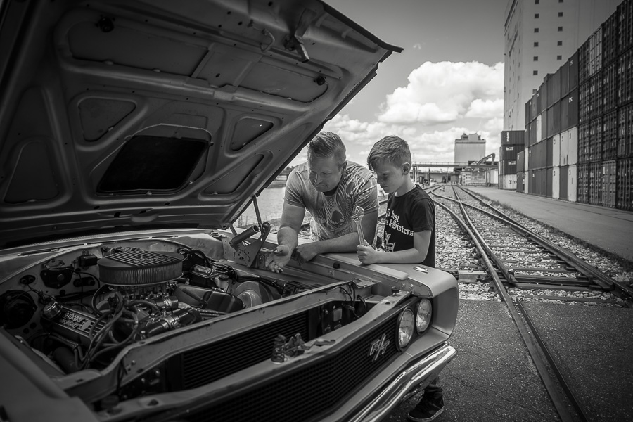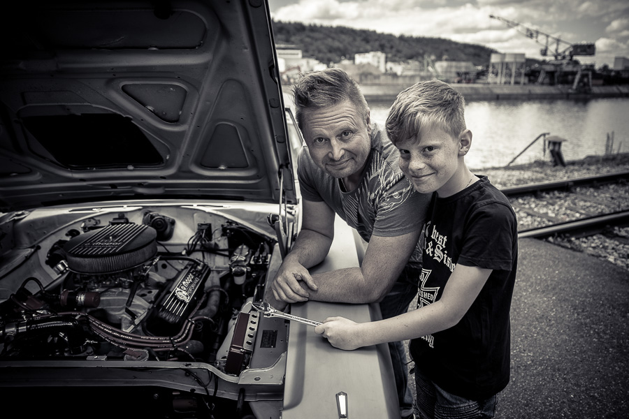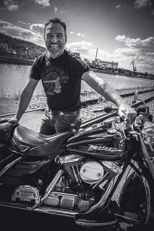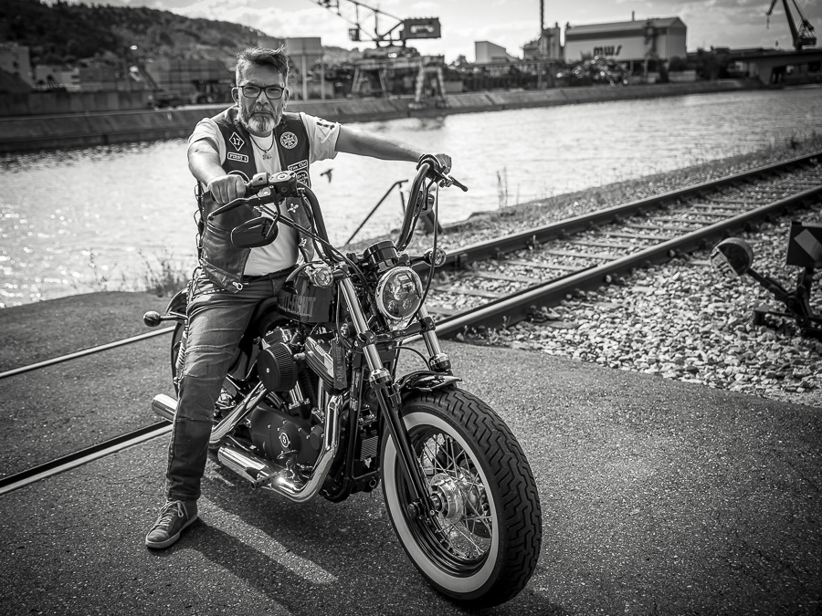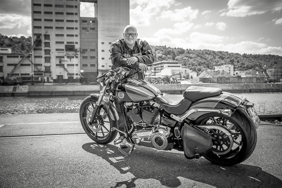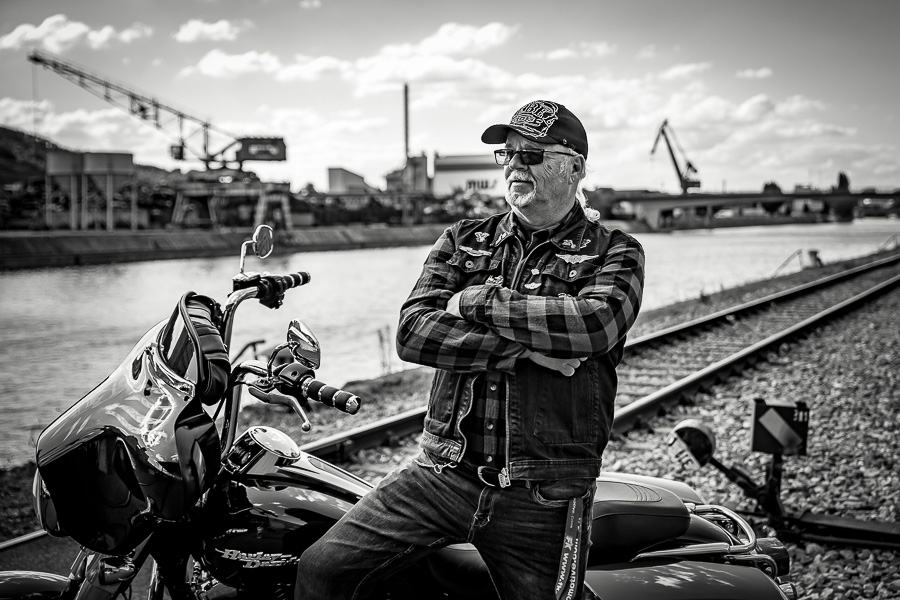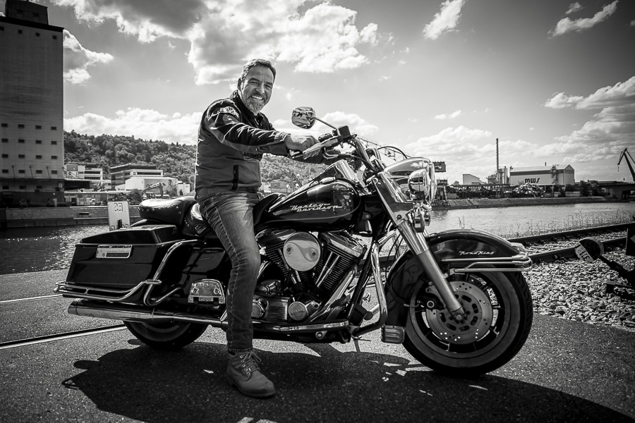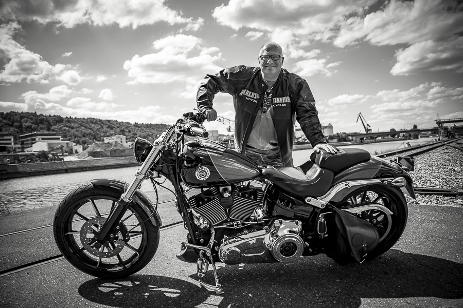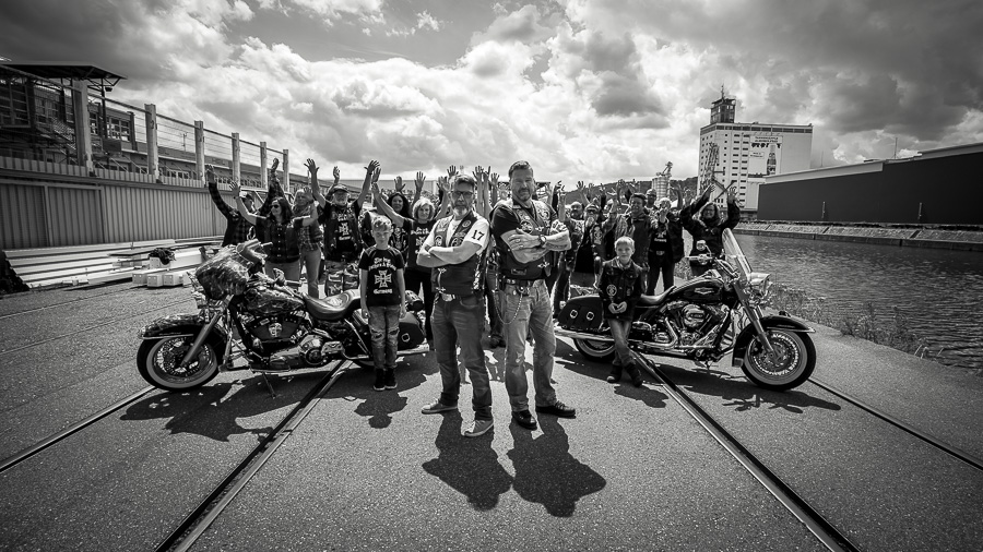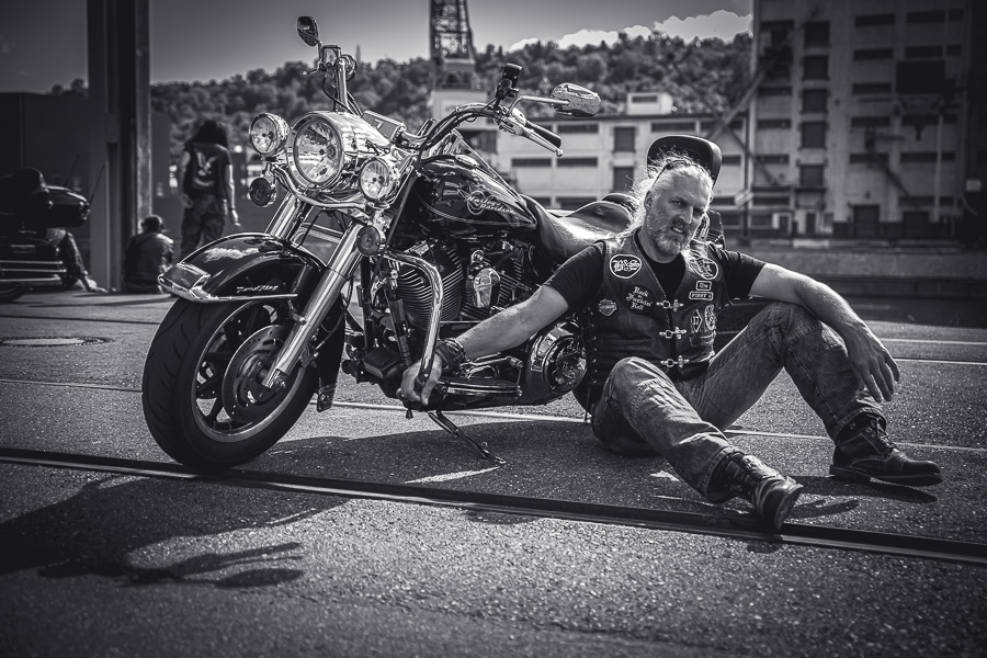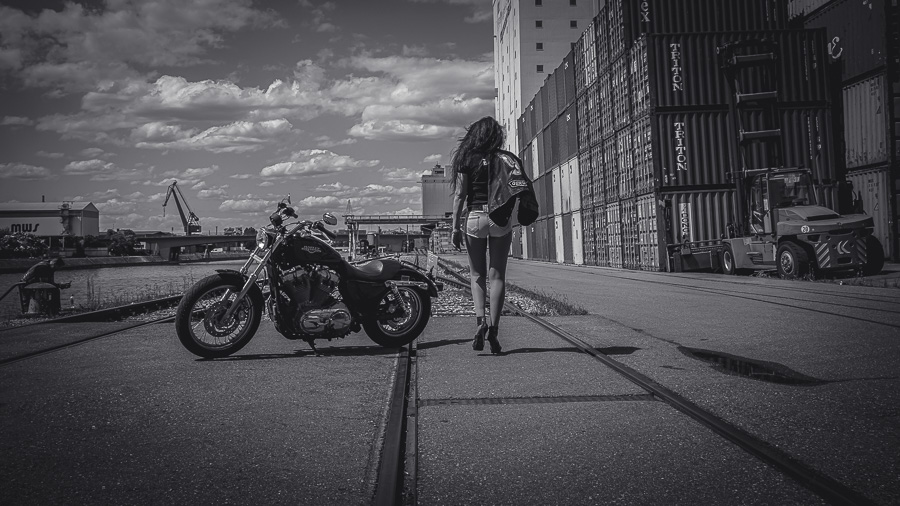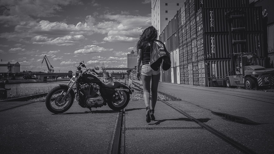 Bamm, was für ein Megafotoshooting mit über 30 Bikern der "The Best Brothers And Sisters" aus Stuttgart. Seit wir uns über die "Road Roses" und das legendäre "Treffen am Schweinemuseum" kennengelernt hatten, waren wir alle schon lange scharf auf ein Fotoevent. Leicht würde es nicht, dass hatten wir bei der Menge an Bikern und Bikerinnen gewusst. Allerdings wollte ich mir ein Shooting mit so vielen geilen Harley Davidson und Choppern auch nicht entgehen lassen. Das erste Shooting mussten wir aus wettertechnischen Gründen absagen, was für alle sehr enttäuschend war. Daher haben wir Nägel mit Köpfen gemacht. Eine wetterfeste Location hatte ich über das Stuttgarter Fotografennetzwerk dank Facebook schnell gefunden. Die Biker haben sich um die Verpflegung, die Anfahrten und die gute Laune gekümmert. Meine Frau Jana und ich haben alles weitere organisiert. Wir haben die Genehmigungen und das Einverständnis des Hafen Stuttgart und den angrenzenden Firmen eingeholt. Vielen Dank für die freundlichen und schnellen Bewilligungen. Ich will euch daher auch gar nicht länger auf die Folter spannen und die Fotos zeigen. Tatsächlich sind es für eine Fotogalerie viel zu viel Fotos geworden. Aber bei so vielen Bikern, die ihren tollen Harley Davidson und Choppern in nichts nachstanden, sind einfach viele klasse Fotos entstanden.