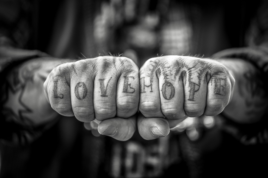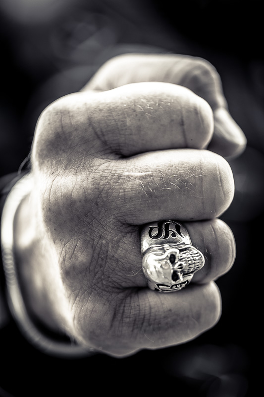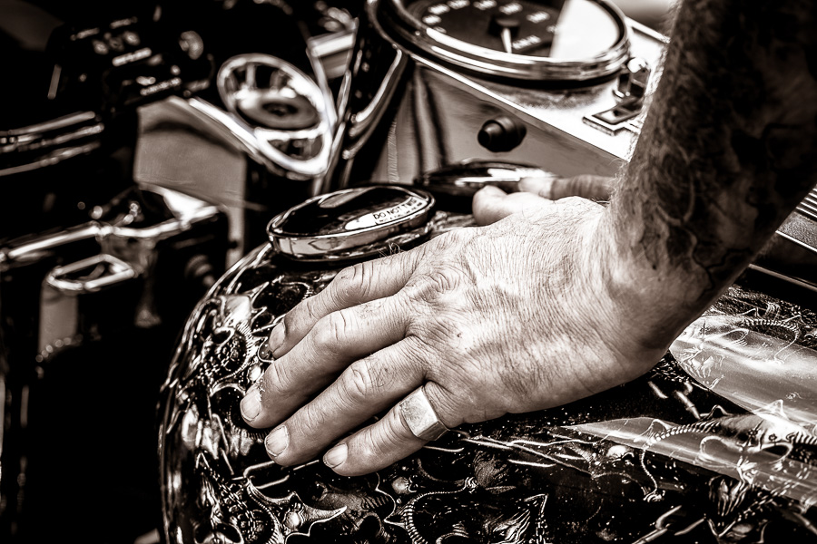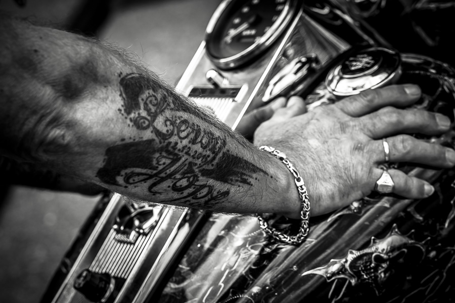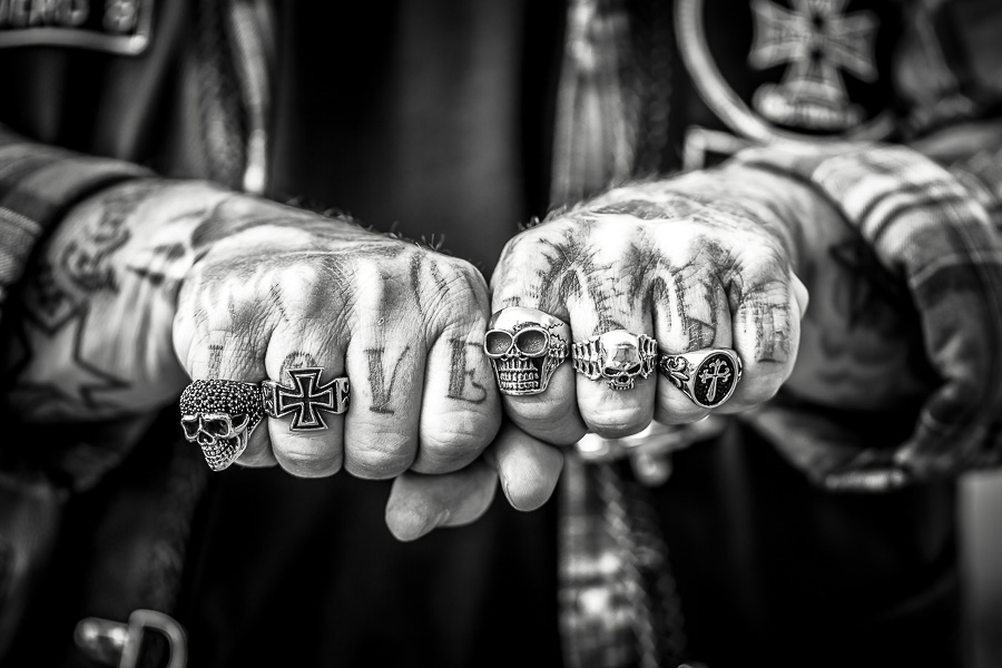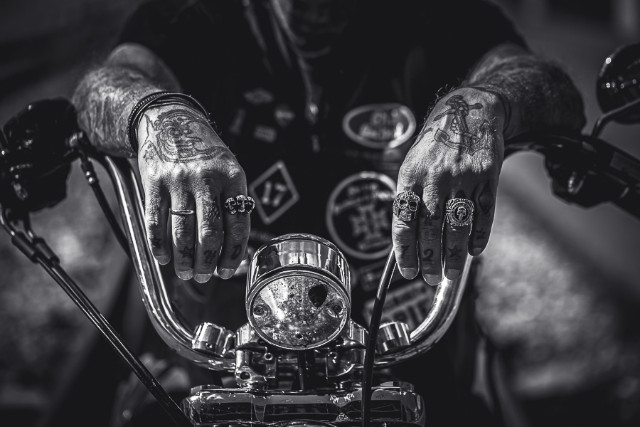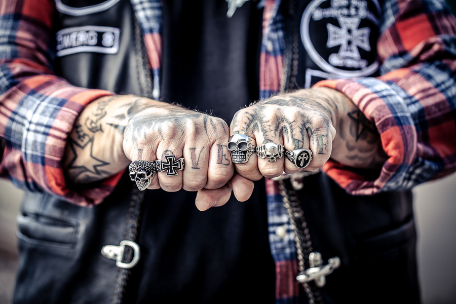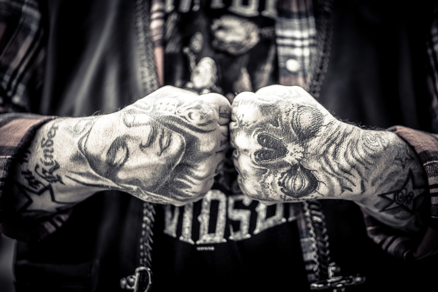 Bikerhände und Tattoos